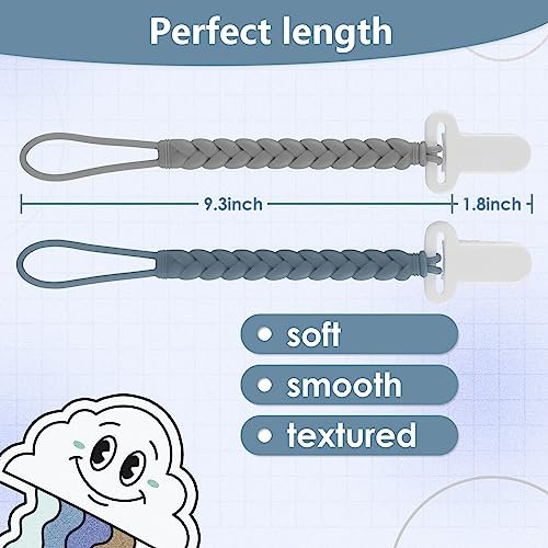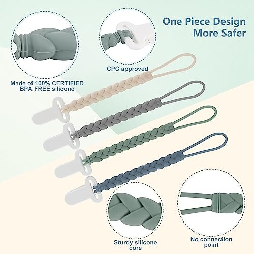 4-Pack Silicone Pacifier Clips with a Woven Rope Shape for Baby Boys and Girls – Flexible and Rust-Free Holders for Teething Relief and Baby Essentials, Safe for Newborns (Grey)