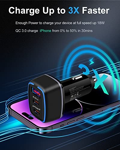 • SUPER FAST – Upgraded C lighter adapter with a Power Delivery 3.0 port to Charge iPhone/Samsung/Google Series models up to 3 times faster than the original 5W Charger with full 30W power.