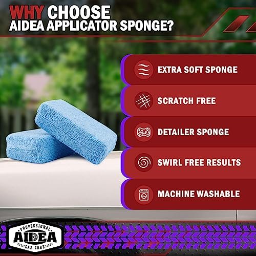 - 【High-Quality Microfiber Sponge Applicators】–AIDEA professional-grade microfiber sponge applicators are gentle yet strong and highly absorbent. The microfiber material buffs the surface gently, ensuring a flawless finish. The rich blue color helps highlight the wax product, preventing dry rubbing.