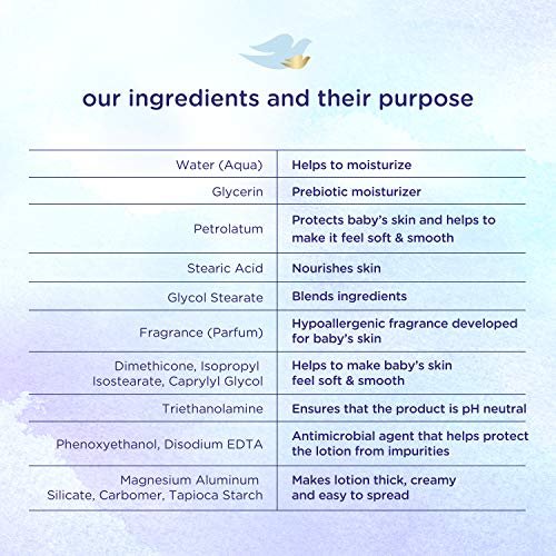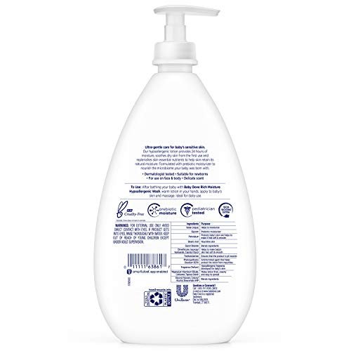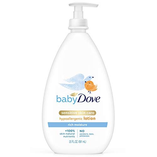 - Rich moisture: Baby Dove Rich Moisture Hypoallergenic Body Lotion (20 oz.) gently nourishes and hydrates baby’s sensitive skin after bath time, leaving it moisturized for 24 hours