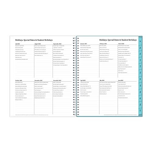 Details: Kick off the academic year with bright, colorful designs to match your busy, colorful classroom! This colorful weekly and monthly lesson planner will help you stay on track throughout the school year with dated weekly/monthly views. Monthly two-page view features reference calendars for long-term planning, a notes section for important details, and motivational teacher quotes to inspire your planning. Weekly two-page view offers lesson planning layouts with ample writing space for detailing each day. With a class birthday tracker, weekly activity schedule pages and weekly lesson planning pages, this yearly planner offers so much more than your average planner. Insert your favorite photos inside the glossy, clear front sleeve cover for a unique planner cover. High quality white paper provides clean writing space for jotting down your appointments, to-dos and reminders. Durable coated tabbed dividers are long lasting and make accessing information a breeze. Premium quality covers and twin-wire binding provide reliable durability for daily use. An interior storage pocket makes it easy to keep pens, receipts, cards and loose notes handy. Stay on track throughout the academic year with this large 8.5 x 11 lesson planner dated July 2023 – June 2024. Mix and match with other planning products from Blue Sky to organize your daily life. Blue Sky creates modern and sophisticated organizational planners and calendars to fit the scheduling needs of busy people – whether it’s for business professionals, college students, teachers, or anyone with appointments to make note of. Keep your life organized with our full line of products including desk pad calendars, wirebound tabbed weekly and monthly planners with contacts and notes pages to accommodate your scheduling needs, and laminated two-sided wall calendars, all in a variety of colors and patterns to suit your lifestyle and personality.