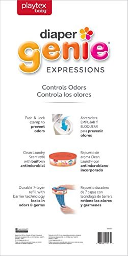 Details: Babies go through 9,600 diapers in 3 years . . . that’s a poop ton of diapers (pun intended). You’ll need a place to hold all those diapers without having to constantly run to the trash can. Don’t look any further than the Diaper Genie Expressions Diaper Pail! Seal in odors with the Push-N-Lock clamp to keep your nursery and home smelling fresh. The easy to use one-handed design makes throwing away dirty diapers simple and convenient while the durable multi-layer refill bags help lock in odors and germs. Being a new parent brings new responsibilities and stressing about diaper smells doesn’t need to be one of them. From the #1 Selling Diaper Pail brand*, the Diaper Genie Expressions Pail is all you need to keep your baby’s nursery as fresh as can be. *Angelcare calculation based on Answers On Demand for the Diaper Pail Category for 52 weeks ending 09.10.2022 time period. Copyright © 2022, Nielsen Consumer LLC.