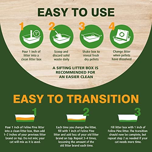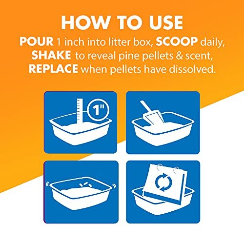 Details: Odor control is important when it comes to your cat’s litter box, but you want a natural option for your feline companion. Feline Pine™ Platinum is a Natural Pine Non-Clumping Litter that’s an odor eliminator with no harsh chemicals, and no added fragrances or synthetic perfumes. It naturally neutralizes odors in your cat litter box because it’s made from natural, plant-based ingredients like natural pine shavings plus pure ARM & HAMMER™ Baking Soda. It’s responsibly made from highly absorbent, sustainably sourced natural pine shavings only from reclaimed lumber (no new trees cut down) that neutralize odor on contact and are gentle on kitty’s paws. This plant-based kitty litter binds directly to ammonia odors and locks them away for good. It’s also low dust and lightweight—less than half the weight of clay litter and leaves no messy cloud of dust.
