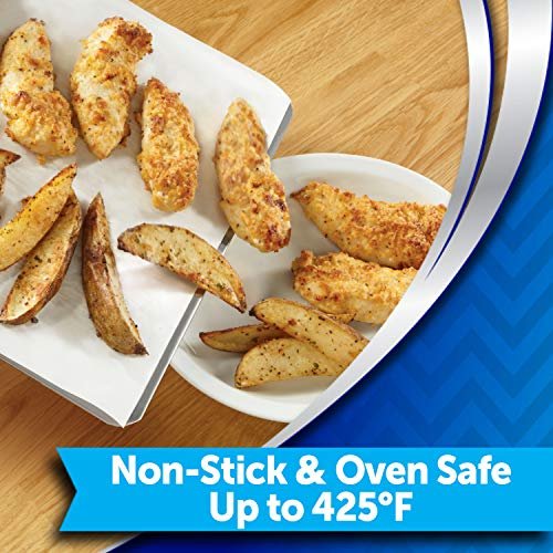 • Reynolds precut parchment paper for baking has a nonstick surface that helps baked food, such as egg rolls and chicken tenders, slide right off your pan