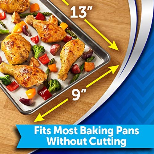Details: Reynolds Kitchens Pop-Up Parchment Paper Sheets make roasting your favorite family meals simple with easy pop-up dispensing. Each precut nonstick parchment paper sheet lays flat with no curling and is sized to fit most standard baking pans. No need to trim or fold these grease proof baking paper sheets and the pop-up dispenser gives you easy, single-handed access. Oven safe up to 425 degrees Fahrenheit, this parchment paper for cooking and baking helps you create everyday meals quickly with minimal mess and easy cleanup.